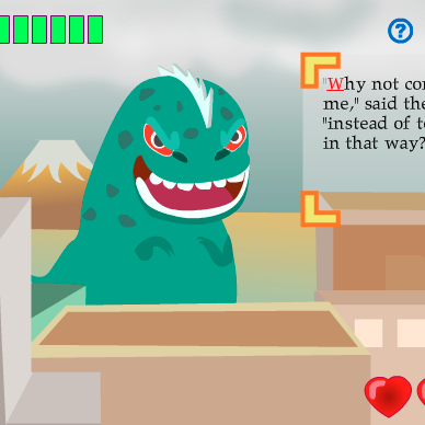 Pokonaj potwora poprzez wpisywanie magicznych zaklęć. Nie zapomnij zniszczyć ognistych kul, pisząć na nich cyfry.